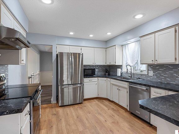 **OPEN HOUSE SUNDAY 1-3PM** Updated split entry home! The vaulted ceilings welcome you into a large great room that has a white brick gas log fireplace with large windows on either side. The beautiful modern vinyl flooring all throughout the dining room, kitchen, great room, and hallway was installed in 2019. Updated kitchen with newer countertops and backsplash, with access to the roomy backyard with a deck that is perfect for entertaining. The primary suite has vaulted ceilings two spacious closets and windows to bring in all the natural light. Two other spacious bedrooms on the main floor with window benches. Basement is perfect for relaxing with ample space and a wired speaker system. The large items in the house have been updated, newer roof in 2017, newer HVAC in 2020, newer water heater in 2020, newer A/C in 2018.
