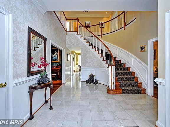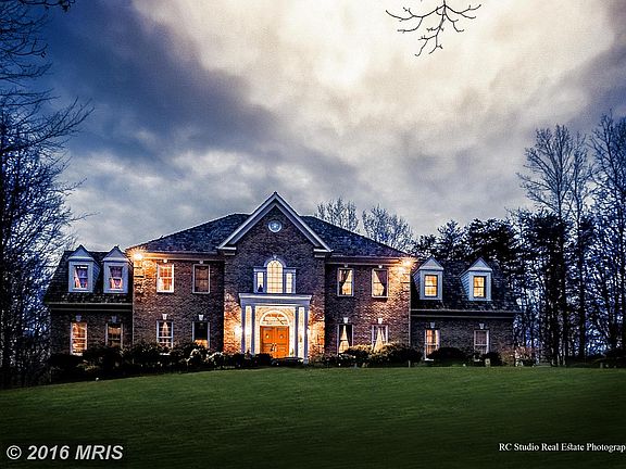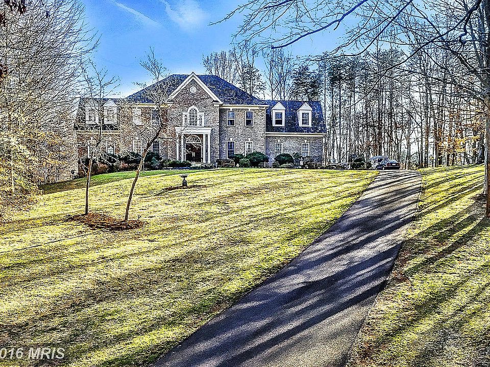 PRICE REDUCED!! All Brick Colonial on 5+ wooded acres Lg open area in rear perfect for pool/sports. 5 Bdrms 3 Full & 2 Ha Ba. Banquet sized DR Custom Library w/ BI Bookcases. Spect Kit w/ very upgraded appls, & designer flr tile. Elegant marble entry foyer w/curved staircase. Lg sunrm, fam rm w/coffered ceiling & 2 sets French Doors to deck. Fin w/o basemt w custom stone bar. Seller wants offr!