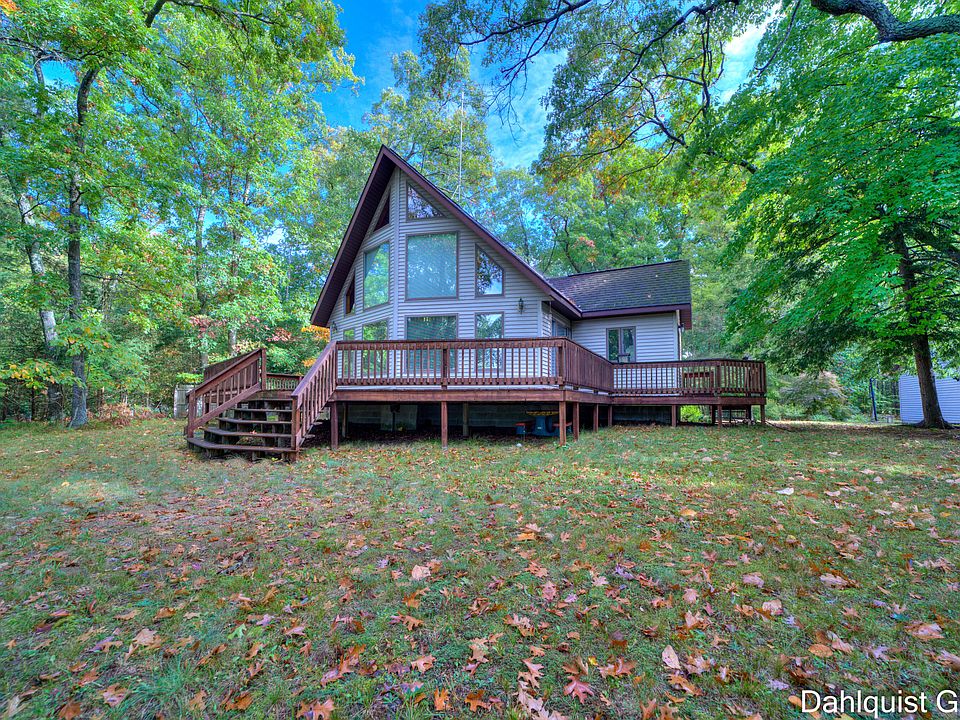 Nestled in the heart of nature's serenity, this enchanting home offers a perfect blend of rustic charm and modern comfort. Situated on 2.9 acres of lush forested land and backing up to federal land where the tranquil White River flows, this picturesque property is a nature lover's dream. Here's your opportunity to embrace the beauty of the great outdoors while still enjoying the comforts of a well-maintained residence. Step inside and be greeted by the warmth and character of solid wood floors, creating a cozy and inviting atmosphere throughout the living spaces. This home boasts three spacious bedrooms, providing room for family, guests, or a dedicated home office. The two full bathrooms offer convenience and privacy for all. Whether you're savoring a morning cup of coffee or hosting a barbeque, the wrap-around deck provides the perfect setting to enjoy the sights and sounds of the forest. The primary suite is a true sanctuary, featuring a private balcony where you can stargaze, enjoy your morning coffee, or simply unwind while taking in the scenic views of the surrounding woods. The oversized 2-stall garage offers ample storage for outdoor gear and vehicles, making it a practical addition to the property. One of the most unique aspects of this property is its direct access to federal land, ensuring unspoiled natural beauty and ample opportunities for outdoor adventures. Explore the woods, hike along the riverbank, or cast your fishing line into the White River - it's all right in your backyard. Escape the hustle and bustle of city life and immerse yourself in the tranquility of the forest. This is not just a home; it's a gateway to a lifestyle where every day feels like a weekend retreat. Don't miss the chance to make this idyllic woodland sanctuary your own. Contact me today for a showing and experience the magic of this natural oasis.