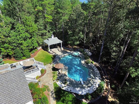 Welcome to this easy-living, meticulously maintained and landscaped home on a 3+ acre private wonderland! Wonder down the stone-paver driveway along the plant-lined walk to the two-story front doorway. Formal, huge dining rm, living rm/open space w/gas fireplace, French drs to Family rm w/gas fireplace overlookiing your own exterior Oasis. Kitchen has been updated with Viking and Samsung stainless appliances including double ovens and gas cook top. Generous granite counter tops, painted cabinets, pantry, and eat-in area surrounded by windows. Powder rm has been updated with furniture-like cabinet w/granite top. Enter area leading to garage w/laundry area, sink & loads of cabinets. The first fl master suite is complete with huge walk-in closet, gorgeous new bath and door to office/nursery. Five bedrooms and bonus area on second floor where one area can be used as separate suite with bdrm and bonus area. The private Oasis off family room with luxurious gunite pool w/waterfalls, hot tub, Pavilion, patios, deck, landscaping and more is absolutely stunning! Woodland Pond Pool, Tennis Club & Lake Assoc available to join. Golf near by. Pocahontas St Park adjoins subdivision.