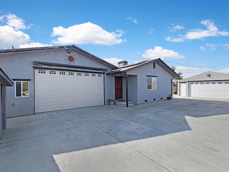 This uniquely special property features a six-car garage and workshop/office (3-car attached measures appx 816sf with an office and 3-car detached appx 660sf), This two-bedroom, one-bathroom home offers approximately 866 square feet of living space. Newly remodeled in 2021 with vinyl plank flooring, stainless steel GE appliances, quartz counters with stone backsplash, new kitchen sink and faucet, new recessed lighting throughout, new water heater (2023), and drought resistant backyard. Fully owned solar! City and well water. There is an additional 172sf detached unit with a full bath great for guest quarters, home office or a rental unit. The property's layout and features also include a greenhouse and a woodworking shop, and ample storage areas making it an ideal option for those seeking versatile living and workspace solutions.