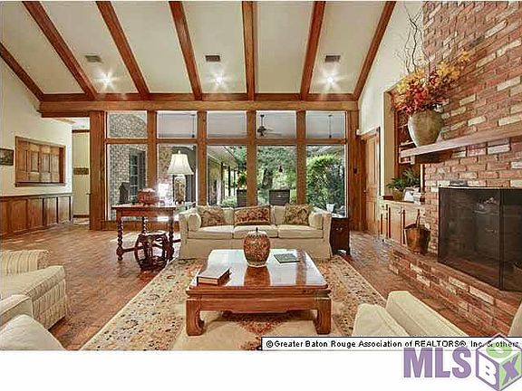 This 4BR/4.5BA Acadian style custom built by owner sits on approximately 7+ acres on historic Highland Road. Large covered front porch with 4 French doors. Foyer is flanked by formal DR on one side and LR or office on other, all with wood floors. Oversized den with brick floors, built-ins, brick fireplace, wood beams, stairs to 2nd floor hallway which is open to den below and wall of windows allowing view to rear covered porch and yard. Wet bar is adjacent to den. Kitchen has stained cabinets, electric cooktop, dishwasher, compactor and double sink. Breakfast area has ceiling fan and wall of windows overlooking side yard. Recreation/gameroom is at rear of home off hall to den. MBR and 2nd BR are located on 1st floor. 2nd floor has 3 bedrooms and office. Lots of storage. Brick and wood exterior. Double carport with attached large heated and cooled storage area. Owner previously had barn with horses. Tennis court. Property has beautiful live oak trees.