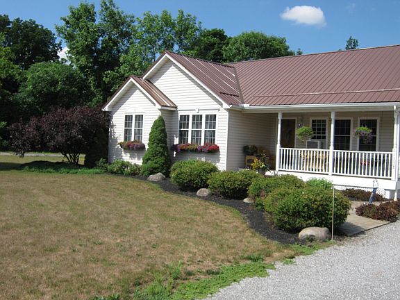Custom built for owner in 1999, one year old steel roof, radiant natural floor natural gas heat in home, basement and garage. Well landscaped one acre lot. Decorated interior with lots hardwood floors, maple kitchen cabinets with island and breakfast bar. Master bedroom bath with jet tub.