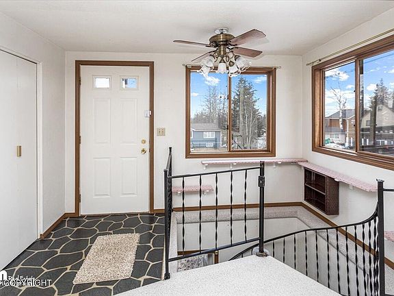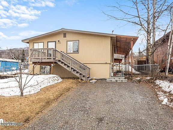Sweat equity potential, could be made into duplex! Unleash your creative vision in this spacious Eagle River home. Each level offers 2 beds, 1 bath, and access to the 30x22 garage. Relax in the large fenced-in side yard and covered walkways. Ample parking and space for toys or an RV.Property offers a shed, mature strawberry bed, lilac and chestnut tree.