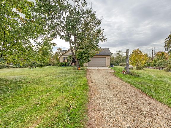 Enjoy country living in this 1,700 sq ft ranch style home on 7.8 acres near Mount Vernon. This home features 3 bedrooms and 2 full baths, a large kitchen with plenty of storage and counter space, and a spacious great room with a cozy gas log fireplace and a beautiful view of the north facing deck. The vaulted ceilings add to the airy and bright feel of the home. The primary suite offers a double vanity, a step-in shower, a soaking tub and a walk-in closet. There is also a two-car attached garage and a detached 1.5 car garage for extra storage or workshop space. The full unfinished basement offers room for expansion! This home is located in Mount Vernon schools district and is just off 229 West only 20 minutes away from I-71 for easy commute.