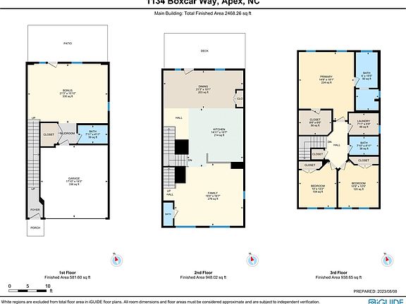 Location, Beauty and Maintenance free living! The Villages of Apex offers the ultimate location-close to everything and this beautiful END unit townhome offers beautiful space – inside and out. 3 bedrooms, 3.5 baths, a huge bonus room and an amazing, private back porch plus fenced in yard. This freshly painted home features 9’ ceilings, updated lighting and NO carpet! Primary Bathroom has a double vanity, garden tub and separate tiled, walk in shower. The kitchen has abundant storage with pull out drawers in the lower cabinets, plus a large pantry and a HUGE island. 2 car garage with hanging storage. Cul-de-sac location. Welcome Home!