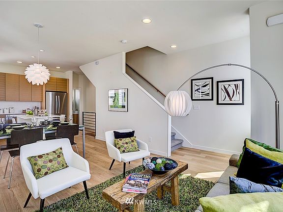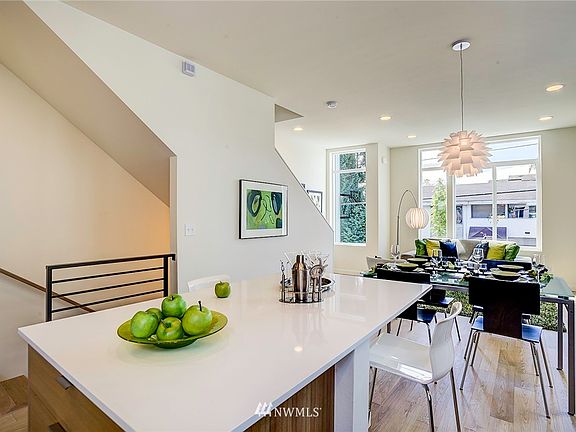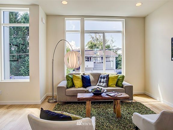Well built and well designed new modern townhome in a popular North Green Lake location. Nice, bright spaces with large windows and Southern light. Spacious living room, dining area, and kitchen with quartz counter tops and stainless steel appliances. (Two different interior packages and floorplans) On the lower level are two bedrooms and one bath. Upstairs is a nice master suite and access to the sunny rooftop deck. Built Green and good attention to details. One car parking pad. Sharp!