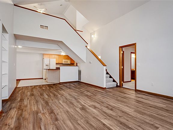 Nestled at the end of a quiet cul-de-sac in the sought-after Plantation Carriage Homes community, this freshly painted condominium offers privacy and style. The open layout features a vaulted living room that flows into the kitchen and dining area, with access to a private covered patio and wooded views. The main floor includes a convenient laundry room with ample storage and direct garage access, a primary suite with an en-suite bath and walk-in closet, and a second bedroom on the main level with a nearby full bath. Upstairs, a versatile loft with a half bath can serve as a third bedroom or den, offering scenic views and additional storage space. Enjoy the benefits of maintenance-free living with services such as mowing, landscaping, snow removal, and exterior maintenance. Residents also have access to the community center which offers a clubhouse with a full kitchen, fitness center, and a heated pool. This home is perfect for those seeking convenience.