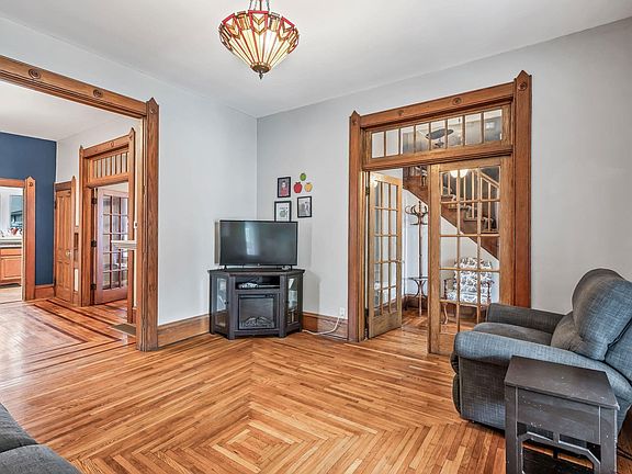 Step into timeless elegance with this beautifully maintained 4-bedroom, 2-bathroom home offering 2,036 sq. ft. of living space. Built in 1900, this historic gem blends old-world craftsmanship with modern comfort. Inside, you’ll find stunning original hardwood floors, intricate trim work, transom windows, and elegant French doors that fill the home with character and charm. The spacious kitchen is perfect for cooking and gathering and wait until you see the beautiful dining room! The massive master suite boasts a large walk-in closet rarely found in historic homes. Every detail of this home has been lovingly preserved, showcasing the home’s history while maintaining excellent condition throughout. The inviting wraparound porch is ideal for relaxing evenings, entertaining guests, or simply enjoying charm of downtown. Outside you’ll find a cute fenced in back yard and a detached garage and barn. Don’t miss the opportunity to own a piece of history that offers both style and comfort.