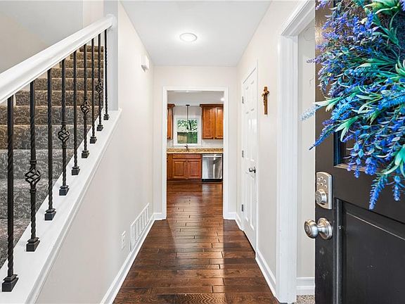- Stylish interior updates: fresh paint, remodeled main-level half bathroom with a modern, moody-classic vibe, and new flooring in the upstairs hallway
