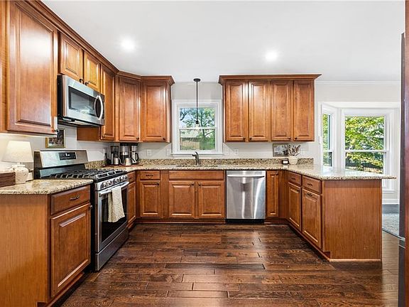 - Updated kitchen with gas cooktop, granite countertops, and room for a formal dining area — perfect for dinner parties