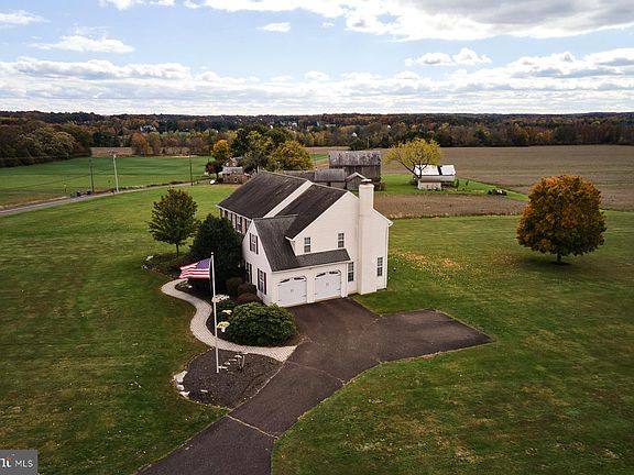 Welcome home to your country retreat located in the heart of Bedminster Township featuring hilltop views of open farmland in all directions. This impeccably maintained custom home is set back from the road and includes 4 beds 2.5 baths, 3350 SF, 2 car garage, and a large 30X40 pole barn on 3.19 acres. Enter into the two-story center hall leading to a well thought out first floor layout including a sitting room, formal dining room, open kitchen, family room, powder room, and a large laundry room. Solid oak hardwood flooring and custom millwork are showcased throughout the first level. The upgraded kitchen features wood cabinetry and granite countertops with an island, breakfast/laptop nook, and newer appliances including a gas stove. The family room is adjacent to the kitchen and has a wood burning fireplace perfect for the fall and holiday season. Large windows overlook peaceful rolling hills and farms with excellent views of the sunset and sunrise. There are two full staircases convenient for accessing the second level where you will find 4 bedrooms, ample closet space, a hall bath, and the primary bedroom with separate sitting room and huge ensuite bathroom with soaking tub. Continuing up, there is a third finished level that is great for storage or even a 5th bedroom or hobby room. The basement has tall ceilings and is partially finished and houses the mechanicals of the home, as well as, separate Bilco doors leading to the side yard for easy access. The 30X40 pole barn is in excellent condition and includes a concrete slab floor, electrical, water, and two 10x9ft overhead doors. Homes in this area do not come available for sale often and are highly desired due to the tranquil setting and abundance of preserved farm properties but at the same time offering the modern conveniences one would hope for with grocery, gas, and shopping only a few minutes away. Nockamixon State Park and Lake are only 2 miles away and for commuting, Philadelphia is approximately 60 minutes and NYC is about 90 minutes away.