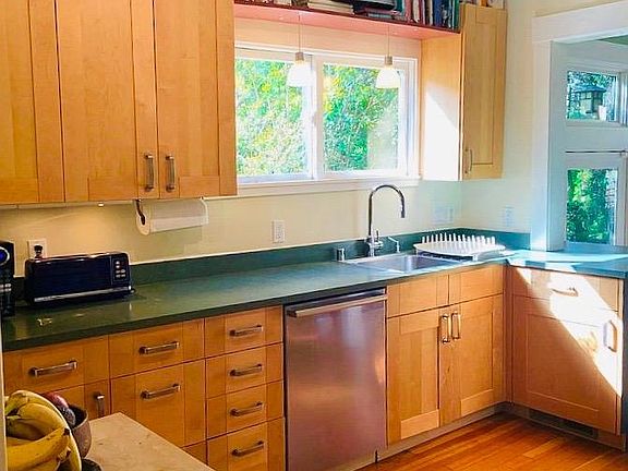 Sunny, lovely home in a great location. This 1910 bungalow has been remodeled with exceptional quality and detail while honoring its historic charm. Large master bedroom with built-in study area, two other bedrooms, full bath and laundry all upstairs. Lower level with modern kitchen (Viking gas stove, Bosch dishwasher and Amana refrigerator), formal living room with fireplace, large family room, a second study area, dining room and second full bath. Replete with original hardwood floors and built-ins. Fully fenced, private and lush backyard including a redwood patio. Recently appraised at $1.42M, it is an easy commute to SF via Bart or bus. Enjoy the top-rated Albany school system and walk-to-everything lifestyle. First time offered as rental by owner. Patio furniture and trampoline can be included. Tenant responsible for utilities