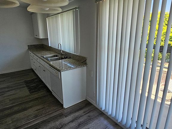 Freshly painted home with wood floors throughout the entire home. Large floor to ceiling window allows an abundance of light into this unit. Extra large living room and dining room. Bedrooms are extra large as well. The refrigerator is included with newer cabinets in the kitchen and bath, all with beautiful granite countertops throughout. Home comes with air conditioning. You have your own separate carport with storage. Laundry facilities are on site. Walk to parks and shopping areas which are close by. Enjoy a beautiful pool on site with tables and chairs. Owner pays for water and trash tenant, pays for gas and electric. No pets are allowed and no smoking.