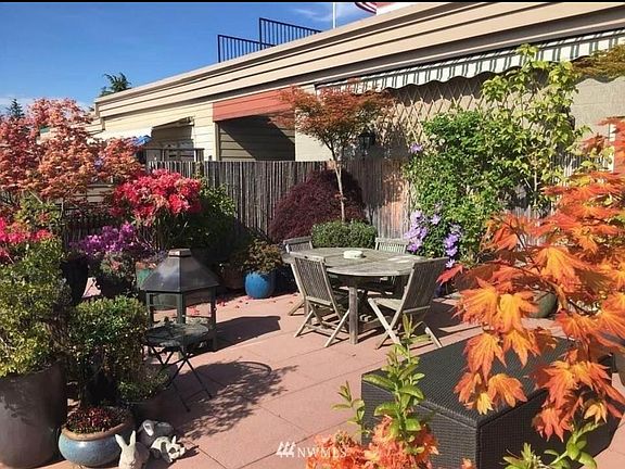 Executive turn key Penthouse condominium fully furnished with expansive private rooftop garden patio and breath taking Bellingham Bay views in Historical Fairhaven. All utilities, cable, internet and gardener included. Secure underground parking. Experience the perfect blend of luxury and natural beauty in this exquisite Fairhaven condominium located in the Fairhaven Gardens Building ideal for professionals and seniors. Nestled in one of Bellingham's most sought after neighborhoods, this stunning residence offers unobstructed panoramic views of picturesque Bellingham Bay, the San Juan Islands and Puget Sound. Key Features: Spacious Living Area; 1115 square feet of indoor living space. Open concept design with generous living and dining spaces with bright and airy wrap around windows for maximum viewing of the scenic backdrop. Fully furnished with smart TV in the living room. Cozy up to the gas fire place in the cooler evenings. Modern Kitchen; Fully equipped with high end appliances, sleek granite countertops, and ample storage with many pantry cabinets. All kitchen amenities provided to make your gourmet meals with a beautiful large granite bar, and dining room table inside or outside for al fresco dining. Comfortable Spacious Bedrooms; Well sized bedrooms with the primary bedroom boasting a king size bed with pillow top mattress. Lots of closet space with two large closets, built in ironing board and iron, large dresser with TV in the bedroom. The secondary bedroom has a built in double bed and office nook with work table and lots of storage space. Bathrooms; Large ensuite bathroom in the primary bedroom has a spacious tiled walk in shower and heated floors. The second bathroom is also a full bathroom with bathtub and shower. Utility Room; Large walk in utility with washer/dryer and sink, with counter space, cupboards and storage shelfs. Garden Patio; 3000 square feet of outdoor living space. Walk right out to your private rooftop patio with 3000 square feet of professionally landscaped garden oasis. It is on a drip watering system and has regular landscaping maintenance. Nothing you have to do but enjoy your morning coffee or evening cocktails on the private patio while capturing the beautiful sunsets over the Bay. Prime Location; Situated in the heart of Fairhaven - the oldest part of Bellingham with its own unique historical architecture you are within walking distance to charming shops, gourmet restaurants, grocery stores, and vibrant cultural activities. The Amtrak train Station, Greyhound bus Station and the Alaska Ferry terminal are all just down the road - a 10 minute walk. Parking; Secure heated private to building indoor parking garage with 2 spaces conveniently located just steps away from the elevator with private access to the 5th floor where your new rooftop home awaits. Utilities; All utilities are included in the rent with gas fire place in the living room, two TV's, cable, internet, heat and AC. Move in Ready; Fully furnished and stocked all you need to do is arrive. No pets, parties, events or smoking. No subletting, or more persons than two bedrooms allow. Lease is preferable for 12 months but negotiable with owner for shorter term.