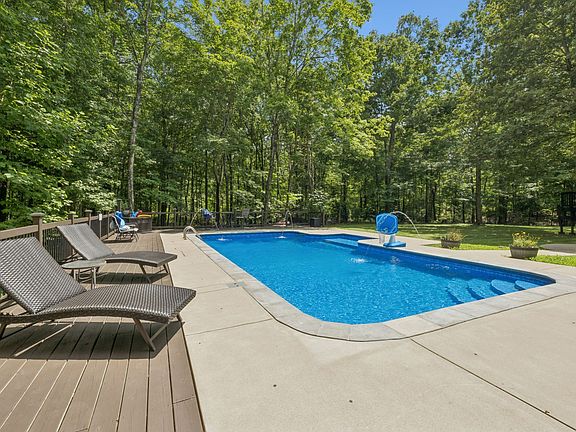 Private Country Oasis on 11+ Acres — No HOA, No City Taxes! Welcome to this beautifully updated home just minutes from Clarksville, set on over 11 acres of flat, wooded land with a deeded private 1,200’ driveway. Enjoy the perfect mix of convenience and seclusion with features designed for comfort, entertainment, and outdoor living. The backyard is a true retreat—featuring a large inground pool with tanning ledge, three pool lights, and three water fountains. A spacious concrete patio and freshly stained deck offer ideal spaces for entertaining. Additional outdoor amenities include fruit trees, a zip line, fire pit, three footbridges, a large storage building, and a fenced chicken coop. The fully fenced backyard—with three access gates—offers nearly an acre for pets to roam. Inside, enjoy LVP flooring throughout the main level and bathrooms, granite countertops, and recently renovated bathrooms including a spa-style primary suite with a freestanding tub. The crawl space is encapsulated for added efficiency and comfort. The septic system has been recently serviced and inspected. Plenty of room for an RV or ATVs—no restrictions here. Don’t miss this rare opportunity to own private acreage with modern updates and resort-style amenities.