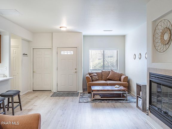 Very well-kept townhome located in a private gated community conveniently located just minutes to Downtown Prescott Square. The unit is located on a private street with a 1 car garage as well as additional assigned parking. Downstairs in the main living area enjoy new flooring, tall ceilings and a cozy gas fireplace with tasteful built in shelving. The kitchen is equipped with a large walk in pantry and a gas range. Upstairs you with find 3 bedrooms with the master featuring 2 closets. Skylights add additional natural light upstairs. Move in ready in a great location with nearby lakes, parks, hiking and biking trails. Walking distance to restaurants and shopping.