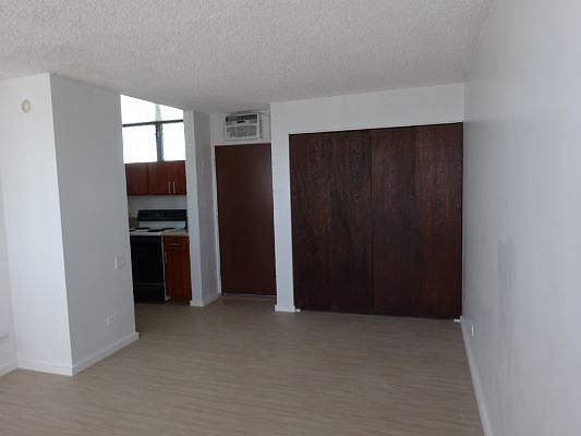 UNIT DESCRIPTION: Renovated studio (as large as a one-bedroom) one-bath apartment unit on the 12th floor available for rent. Unit has hardwood floors, wall ac, a stacked washer/dryer, and new curtains as well as kitchen and bathroom counters and cabinets. Unit comes with one covered parking stall. LEASE TERMS (OTHER): Water/sewer and refuse included in lease. Tenant pays for electricity, internet, cable tv, and all else RESTRICTIONS: . No pets. No Section 8. APPLICATION: Each adult occupant must complete our rental application. There is an application fee. Verification of employment, past rental history, credit history and other background checks are performed. CONTACT: If interested, please call or email for additional information. We are open Monday - Friday, between 9 am -5 pm. Showings by appointment only. WEBSITE: For more information, visit our website at www.hawaiirealtymanagement.com for more information about the unit and the rental terms, etc. LOCATION: Apartment building is centrally located in lower Makiki on Kinau Street, across the street from the Safeway and Times Supermarkets. Unit is near major shopping areas such as Ala Moana, Kakaako, Waikiki, and downtown. Building is walking distance to the post office, Thomas Square park, the Honolulu Museum of Art, and the Neil Blaisdell Center. Building is one block from #1 Westbound bus line. Easy access to H1 freeway. AMENITIES: Building and attached parking garage are secured. Private pool and small recreation area.
