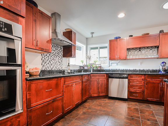 Remodeled Ranch. Gourmet kitchen w/stainless appliances, granite counters, Cherry cabinetry, eat bar, wine rack, prep sink, pantry & laundry closet. Large Master suite w/walk-in closet, jetted tub, double sinks, slab granite & Maple cabinets. 3 more bdrms + den w/French doors. Gleaming hardwd floors & gas frplce. Solar tube & open/close Velux skylight = bright interior. Cat 5. Good public transportation. Bikescore 70.