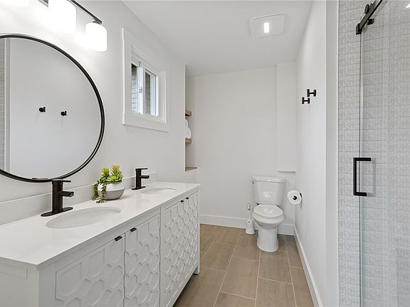 The spacious master bedroom is a true retreat, complete with a large walk-in closet to accommodate all your wardrobe needs. Adjacent is a luxurious master bathroom with a walk-in shower and double sink vanity, perfect for unwinding after a long day.