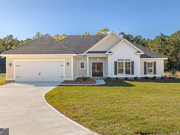 Welcome to this stunning MOVE IN READY brand-new construction located in the desirable River Oaks community. This 4-bedroom, 2-bath home sits on a generous 0.72-acre lot and offers thoughtful design and quality finishes throughout. A charming front porch leads into the foyer and spacious living room, all featuring durable and stylish LVP flooring. The modern kitchen is equipped with stainless steel appliances and includes a pantry with built-in wooden shelving. Adjacent to the kitchen are a convenient mudroom and laundry room. The primary suite is a true retreat with trayed ceilings, a luxurious en suite bathroom featuring double vanities, a separate tiled shower, a soaking tub, and a walk-in closet with custom wooden shelving. Three additional guest bedrooms provide plenty of additional space. A rear porch offers the perfect spot for outdoor relaxation, and a two-car garage adds functionality to this beautifully designed home.