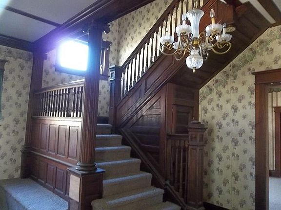 This property features a grand Victorian home with five bedrooms and two bathrooms, providing ample space for relaxation and entertainment. The interior showcases original woodwork and some new carpet, blending classic elegance with contemporary style.