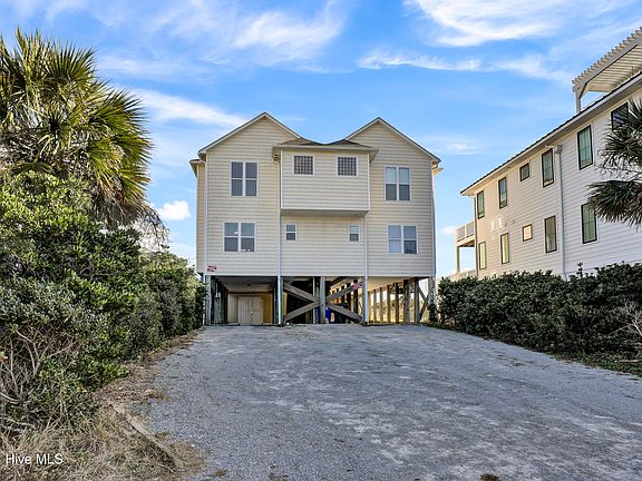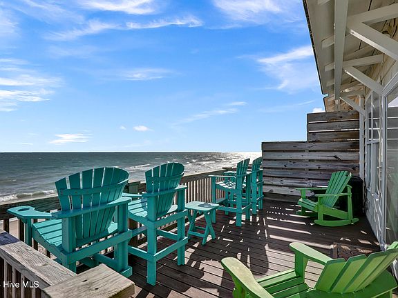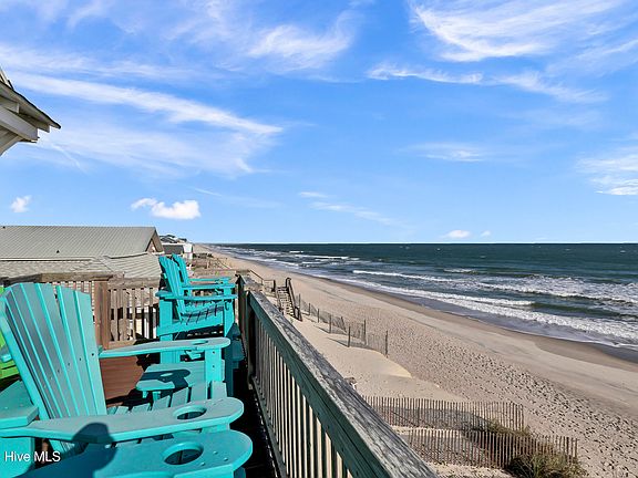 Oceanfront duplex with 5 bedrooms, 4 and ½ baths, rental income in 2024-2025 55-60k with Ward Realty, wind and hail 6262 and flood insurance 1017 per year currently contact Crew Insurance for ability to transfer at closing. 1st floor features 4 bedrooms - 2 could be considered primary with full baths, oceanside primary featuring direct oceanfront deck access and hot tub and outside shower, 3rd features bunk beds with trundle, 4th bedroom, full bath, laundry, and storage closets. 2nd floor opens to kitchen, dining, and living room with lots of light and breathtaking panoramic ocean views north and south. 5th bedroom could also be considered a primary with walk in shower and jetted soaking tub. ½ bath conveniently located off the kitchen. Kitchen features include an eat at side bar granite for 4, Side cabinet with controlled temperature wine frig, 2 dining tables that will seat 8, and spacious living room area with ocean views from every seat. Exterior decks conveniently connect with side stairs that lead all the way down to private ocean access. Ground floor has an added storage room, spacious covered parking area and large area with driveway for that much needed parking that makes access on the 25 mph section of South Shore easy, and if traveling by foot or bike, you are only minutes away from shopping, restaurants, and the Surf city Bridge.