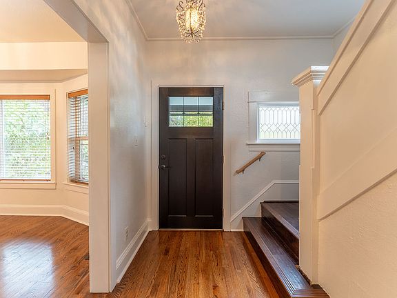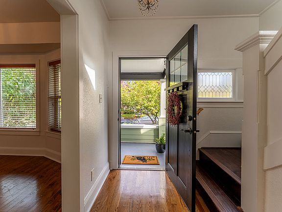 Updated Sellwood 4bd/2ba farmhouse with over 2500sf of space that includes two bonus rooms and central AC. Newer paint and hardwoods throughout the home. Living room, formal dining room, first bedroom, full bathroom with claw foot tub, laundry and updated kitchen are all on the main floor. The kitchen offers electric range, dishwasher, ample cupboard space and a butcher block kitchen island. Slider from the kitchen/laundry opens to a small deck and fully fenced backyard. The second floor features three more bedrooms, the first bonus room and a full bathroom with walk-in shower. Detached single car garage with second bonus room; great for a workshop, craft space or additional storage. Large driveway for off-street parking. This home is west of SE 13th Ave. Walk to New Seasons, coffee, restaurants, parks or hop on the Springwater Trail.