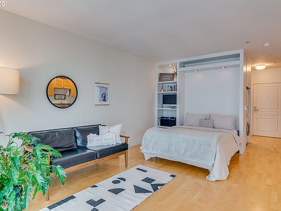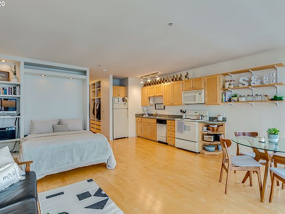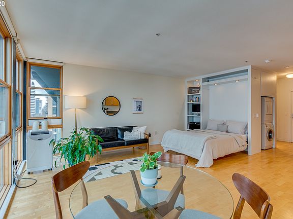 Top floor downtown condo in the heart of the Culture District! Great location, within walking distance of the brewery blocks, coffee shops, Portland State, Safeway, Saturday Market, and so much more! You will love the ceiling to floor wall of windows with a beautiful view of the sunset and sunrise every day! Includes bike storage and storage area in the complex. Unit has murphy bed, and plenty of hidden storage, all appliances stay!