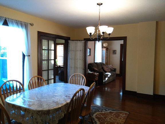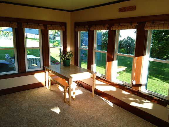 Welcome home! This newly- remodeled, well-maintained home is ready for you to enjoy with ample space for a family, inside and out. Check out the large eat-in kitchen with new countertops, floor, stainless sink, and dishwasher. Main floor bath has been completely redone, with all new fixtures and floor. Refinished hardwood floors and original wood trim provide a warm, natural beauty to the living room and dining room. Relax in the sunroom and enjoy the view of the perennial flower bed. Low-maintenance exterior, with new roof and vinyl siding in 2010. Experience the feel of country living in town on this double lot property. Come take a look!