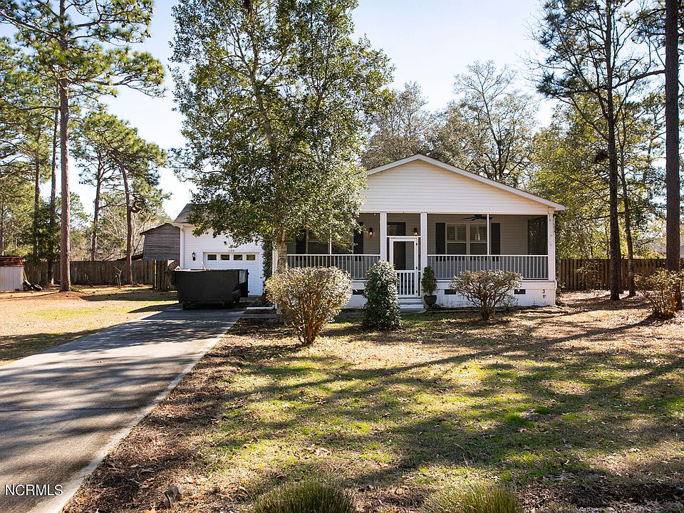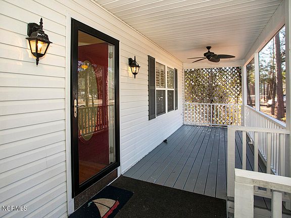 Inviting cottage with glimpses of Spring Lake from the front screened porch. Special features include: light and cheerful family room, large master bedroom with walk-in closet, eat in kitchen, laundry room with washer and dryer, wood floors and, baths with ceramic tile. Also included are plantation shutters, plus ceiling fans on porches and throughout. Home is a short walk from Spring Lake' and its municipal park. Boiling Spring Lakes is a wonderful community with quick access to Wilmington, historic Southport and the beautiful beaches Oak Island