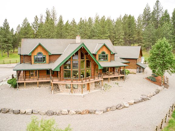 One of the nicest quality built homes in Stevens County located East of Colville close to Starvation Lake. Quality through and through in this custom home with a chef's kitchen, oversized bedrooms and a master suite you could live in. Large office could be used for family room or additional bedroom. Lake views and abundant wildlife make this a serene place to live. Sit around the fire pit and enjoy piece and quiet while watching the Eagles fly over.. 850 sqft apartment over garage for family, guests. VRBO or rental potential. Covered decks front and back highlight this massive prow front dream home. Large detached shop for all your toys. She shed/man cave potential in the past jacuzzi building. Property is low maintenance with a fenced garden, garden shed, and sprinkler system.