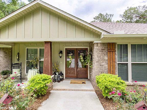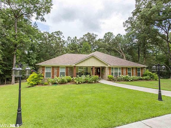 A place to plant your roots.This home sits on a beautiful 6.5 +/- acre lot. Passing breathtaking oak trees down the circular driveway this Custom built in 2017 this home will not dissappoint! Through the front door, boasting amazing craftsmanship around the formal dining room, this home opens up to the sought after open floor plan concept. The living room features a gas fireplace for cozy evenings. The kitchen is equipped with granite counter tops, top of the line stainless appliances, and great storage cabinets. The bedrooms are split floor plan.The master suite has nine ft.ceilings.The fourth bedroom is 24 x 24 and features a half bath. It can be used as a bedroom, man cave or endless possibilites. Sitting just off the living is a screened in porch, making early morning coffee delightful while enjoying the serenity of the wildlife. This home has extra blown in insulation, tankless hot water heater, gas fireplace, and fruit trees just to name a few.This home was built in the middle of two lots of a four lot subdivision. If the buyer wishes to sell lot 1 that is an option too! This home isn't far from the interstate either if you work in Mobile and wish to have a home that is like a retreat. Call today to schedule your private viewing of the property. Buyer is responsible to verify all square footage it is not warranted or implied by REALTOR or seller.