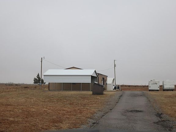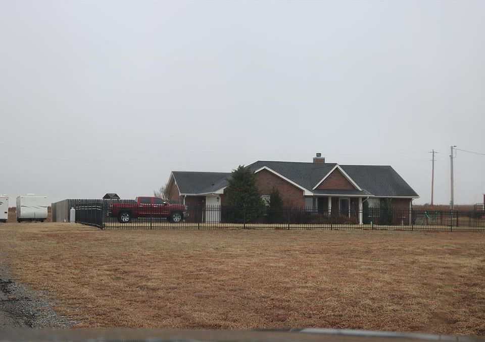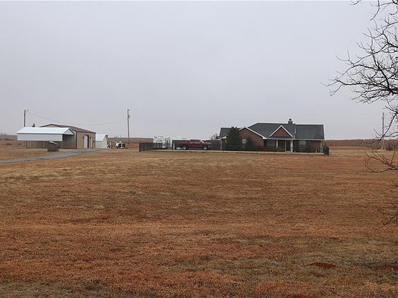 This gorgeous home is immaculate with a spacious open floor plan the kitchen is one you would love to spend time in cooking with the dining room off to the side. The house has recessed lighting throughout which sets a relaxing atmosphere. A large living room with a wood burning fireplace. The master bedroom is beautiful with double sinks, two walk in closets and jacuzzi tub. The other bedrooms are good size also. Outside Is a covered patio with a wood fence around it in the back with a 40 X 30 shop, a storm shelter, water well and wrought iron fence around the front yard. There are 5 acres in the back that is fenced off pasture area. If you are looking for country living this is your house.