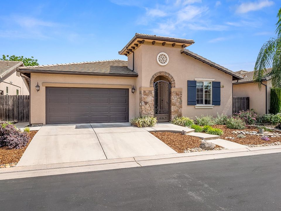 Welcome to Tuscan Bluffs at Copper River Ranch an exclusive gated community offering comfort, security, and low-maintenance living in one of Fresno's most coveted neighborhoods. This immaculate, move-in-ready home is perfect for first-time buyers, retirees, or anyone seeking a peaceful lifestyle just minutes from the scenic trails and natural beauty of Woodward Park. With 1,802 square feet of thoughtfully designed space, this 3-bedroom, 2-bath home features owned solar with battery backup, ensuring energy efficiency and peace of mind. The oversized two-car garage includes a tandem extension perfect for a third vehicle, home gym, workshop, or extra storage. Experience the perfect blend of elegance and functionality in a serene, well-maintained setting where elevated living meets everyday convenience.