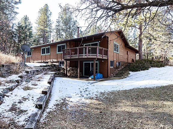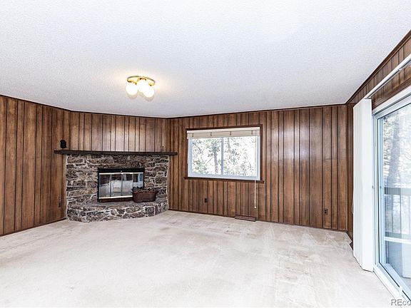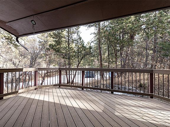 This beautiful, secluded 5.8 acre treed lot nestled in a picture-perfect wooded meadow offers a Ranch home with incredible views! If you desire privacy and the serenity of nature, this home is for you! Enjoy picturesque scenery, birdsong and the scenic adjacent pond fed by seasonal runoff. Ideal for outdoor hobbies with ample land and two sheds. Owners have kept this home in terrific shape. All paved access to the home and no dirt roads. Look forward to meals alfresco on the spacious partially-covered deck. The home has three bedrooms on the main level and another in the basement--ideal for a family or for entertaining guests! The kitchen is complete with a breakfast bar for easy-going mornings. In the evenings, enjoy the crackling ambiance and warmth of a wood-burning fireplace on the main level and wood burning stove in basement. The perfect home for a peaceful, everyday living surrounded by the beauty of colorful Colorado!