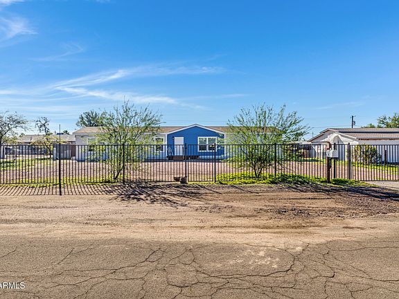 Exceptional find! This affordable 4 bdrm 2 bath home on an expansive lot is smart, spacious, & budget friendly! Well-appointed 2,100 s.f. home is situated on nearly half an acre - a rarity at this price point - is move-in ready, with new interior & exterior paint, barn doors, & nice flooring throughout. The living area is huge, w/an open floorplan that's versatile & welcoming. The master bedroom/bathroom is large & luxurious, & the three bedrooms on the opposite end provide plenty of space for family or guests, or perhaps an office, den, etc.. The lot is fully fenced, with quality wrought iron fencing in front & two gates for easy access. The back yard features two outbuildings - always handy for tools, toys, or storage, and there's excellent freeway access to both the 60 and the 202. There's a tremendous amount of space for parking vehicles and your boat or RV. Located in an up-and-coming community with the gorgeous Superstition Mountains in the distance, this a phenomenal buy!