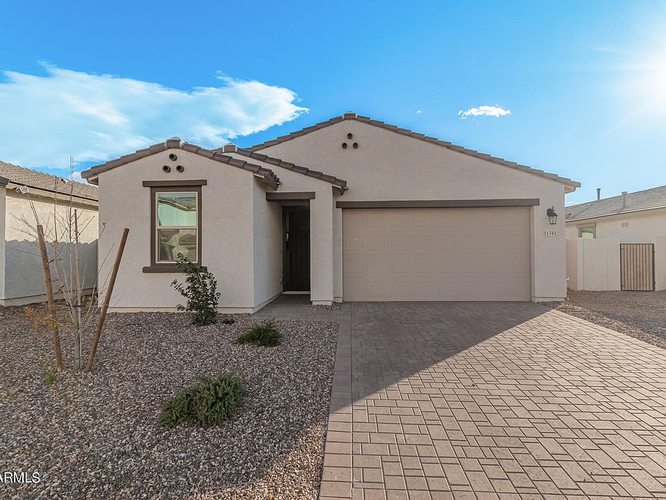 Single level home with a wall of glass at great room. Kitchen with White cabinets, granite counter, stainless steel appliances with gas cooking and includes a ss Refrigerator. Upgraded wood like tile and neutral upgraded carpet. Blinds, 8ft interior doors, New Champagne color washer and dryer included. Upgraded paver driveway. Backyard is complete with paver and patio, new turf, planter box and rock.