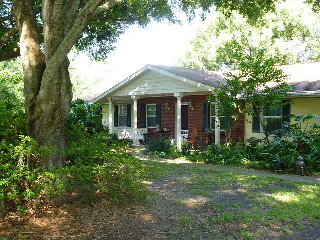 A lovely waterfront ranch style home with an open floor plan. A beautiful covered dock overlooks the large boat navigable canal leading to the pristine Clermont chain of lakes. A well planted yard and park like setting with beautiful mature oak trees, exotic fruit trees and plants are in place. A two car attached garage with extra room for a workshop and stairs leading to overhead storage. Roomy 12 x 24 screened porch with multiple ceiling fans looking out over water. Step down the stairs leading from your concrete and block sea wall right onto your kayak. Patio leads back into a 3/4 bath and adjacent laundry room so you can come from your day on the lake without bringing the lake into the main house. This Florida home also has the large overhang eaves to keep the rain from your foundation and keep your home COOL! Sturdy wonderful home.