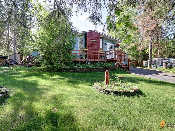 Mid-Hillside ranch with open kitchen, living room with wood burning stove, private master bath, and a bright bonus room with double doors leading to the back lawn. Step outside and you'll find a landscaped yard with mature trees, plenty of toy parking with easy access, and multiple decks to take advantage of sunny days. Nearly a 1/2 acre, this property embodies the true Alaskan experience.