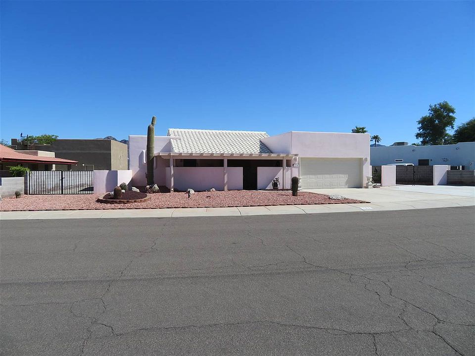ENJOY DESERT SIMPLICITY in this furnished 2 bedroom, 1 3/4 bath home with an attached 2 car garage plus a detached 1 car garage with A/C and 1/2 bath. There is tile throughout with a split floor plan, an addition that is a den/family room plus a glassed AZ room with A/C. This home has been well maintained. Home is 1541 sq. ft with large lot that's 12,143 sq. ft. The property is on septic. Hurry and call today! This one won't last long!
