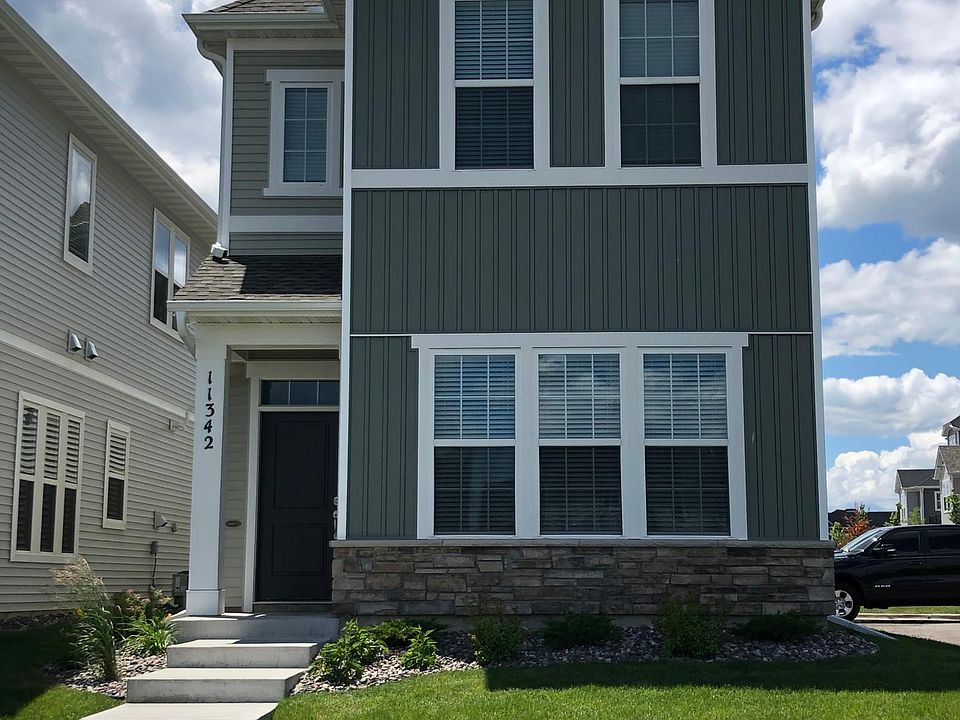 Trendy home in highly sought after area of Maple Grove. Walking distance from MG Central Park, and only 1.5miles to Arbor Lakes shopping and restaurants! Easy access to the interstate. Home features open kitchen with beautiful granite countertops, stainless steel appliances, and living room with a gas fireplace and large windows. All three bedrooms are on the same upper floor along with the laundry. Master suite includes a balcony, spacious bathroom and large walk-in closet. A Jack and Jill bathroom connects the two other bedrooms. The white cabinets and large windows fill the house with light. Attached two car garage with hanging shelving for tons of ceiling storage. Home is on a corner lot, with additional guest parking alongside the house. HOA includes community green space, fire pit, and more. Local landlords that pride themselves with prompt response and quality service. 1 year lease minimum. Rent includes snow removal, lawn care, and sanitation. Pets (cats and/or dogs) allowed upon approval. Each pet is an additional $75/mo. pet fee