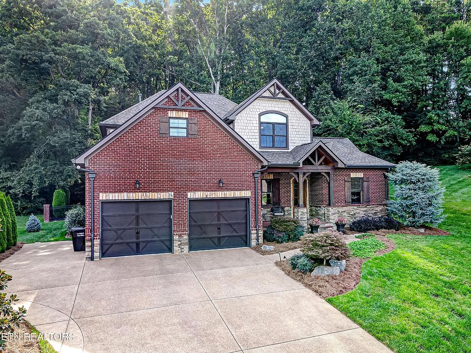 This immaculately maintained two-story custom, all-brick home boasts luxurious features and a prime cul-de-sac location, just steps away from the popular shopping district of Turkey Creek, greenway trails that connect to all of Farragut/West Knoxville, and the neighborhood pool in the very desirable pocket community of The Cove at Turkey Creek. With four bedrooms, two full bathrooms, and two half bathrooms, along with a media room and a partially finished, heated/cooled bonus room, this home offers the perfect blend of comfort and sophistication. As you step inside, you'll be captivated by the craftsmanship of the hand-chiseled beams and finish carpentry that blends with the natural stone, creating an open floor plan that effortlessly connects the living spaces. The heart of the home is the gourmet kitchen, complete with a large pantry, granite countertops, and top-of-the-line appliances. Whether you're hosting a formal dinner or a casual gathering, this kitchen is sure to impress. The main level is designed for convenience and relaxation, featuring a spacious master suite. Enjoy a peaceful retreat with an en-suite bathroom that includes a whirlpool tub, tiled shower, double sink vanity, and two walk-in closets. Upstairs, you'll find three additional bedrooms, providing ample space for family and guests. Entertainment options abound in this home! A dedicated media room offers a cinematic experience, while the adjoining bonus room can be customized to suit your needs—extra climate-controlled storage, a home office, fitness center, or playroom. Step outside to your private, virtually maintenance-free backyard with a screened-in porch, the perfect spot for morning coffee or evening cocktails. This property also boasts a built-in outdoor grill on the stone patio, ideal for hosting cookouts and gatherings. The 'icing on the cake' is the over $50K investment in the outdoor living space, which consists of lush artificial turf with a chipping and putting green, a waterfall
