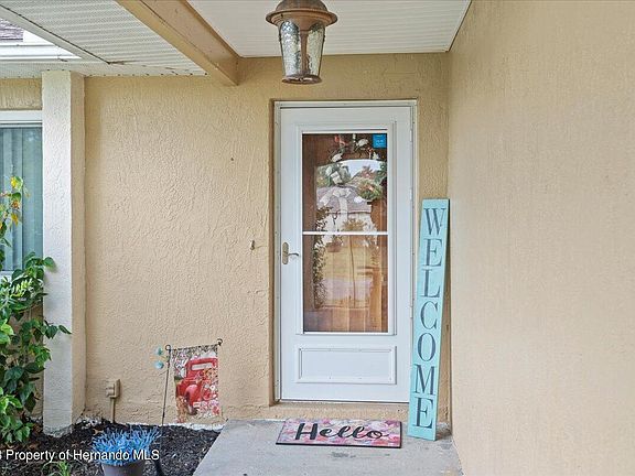 This incredible and unique home sits on an oversized .33 of an acre lot, with beautiful landscaping and has so many features to boast about! The beautiful plank tile meets you at the door-let's talk about the hand carved mahogany front door brought from Belize! You also have a glass storm door to let natural light in. Brand new windows, corian kitchen counters and gorgeous new cabinets. The large bonus room features its own full bathroom and a closet with a steel door for safekeeping of precious things during storms, while away, or just to have a safe place for them. The three full bathrooms that have been remodeled offer convenience for family and guests. There's a surprise screened in, private patio through the master bedroom and bathroom that you will love! This home is located on a quiet street in Spring Hill's favorite zip code in such an ideal location with grocery stores, restaurants and medical care so close by!