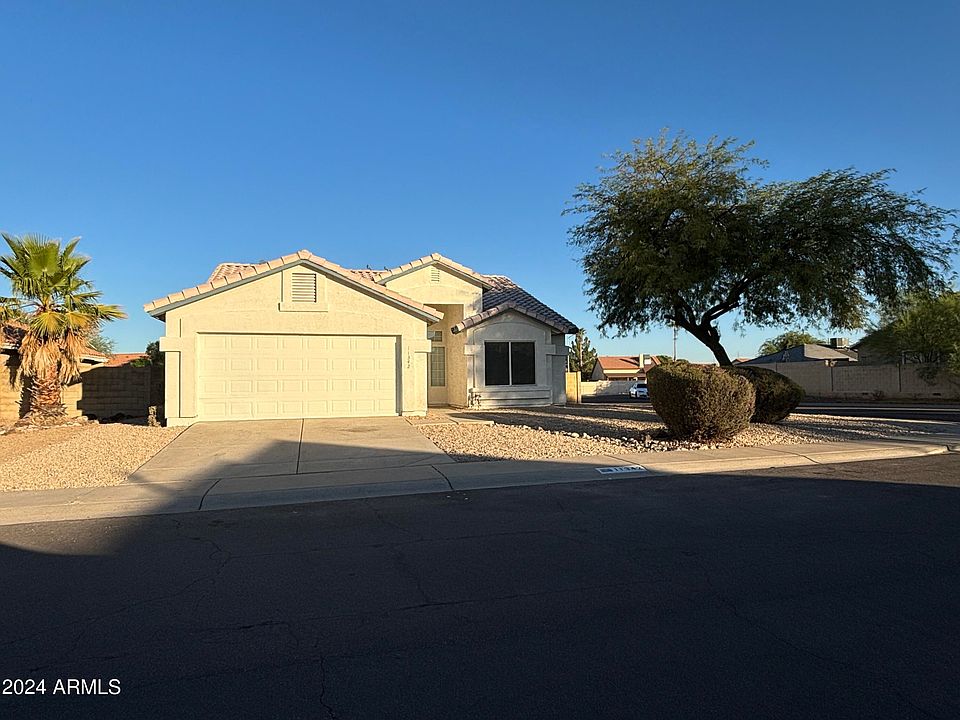 **NO HOA** Here is a perfect entry level home for a single person or a young family! This 3 bedroom and 2 bathroom home has a great room floor plan with over 1400 sf of living space. This home sits on a North/South facing lot and it features a good sized kitchen with a pantry and an eat-in nook. The great room boasts a fireplace and a dining room. The master bedroom has a separate exit to the back yard and its bathroom contains dual sinks and a large walk-in kitchen. The front and back yards both have easy to maintain desert landscape and the house sits on an corner lot. This home is in close proximity to Loop 101, Grand Ave/US 60, State Farm Stadium and Westgate, not to mention the state of the art VAI Resort that is currently under construction! Buyer to verify all pertinent info...