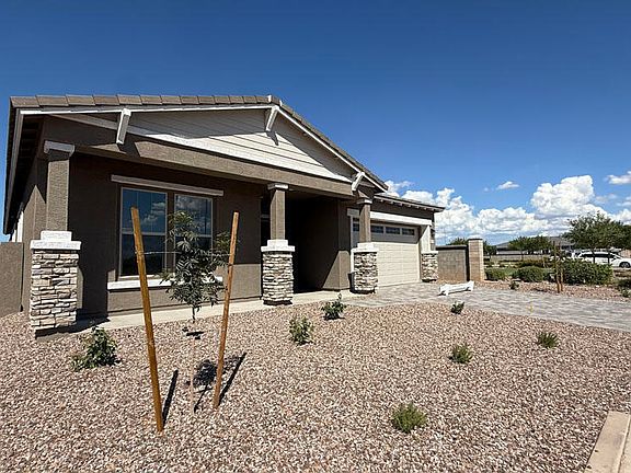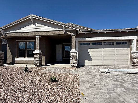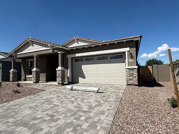 This stunning Topaz floorplan sits on a desirable corner lot with mountain views and a Craftsman elevation. Featuring 3 bedrooms, 2.5 baths, a teen room, dining room with butler's pantry, and an open great room and kitchen with stainless steel GE Profile gas appliances. The owner's suite offers a soaking tub, enlarged tile shower, dual sinks, and a walk-in closet connected to the laundry. Designer finishes include two-tone cabinets with matte black and gold hardware, white marble quartz countertops, Deco doors on the island, 4-panel slider, tile backsplash with windows, wood plank-style tile flooring, 8' doors, 10' ceilings, and more!