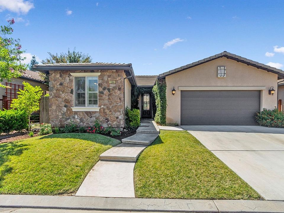 Best price in nieghborhood. Prestigious gated Tuscan Bluffs in Copper River. Beveled glass entry door, extended tile flooring, hand textured wall finish, granite counters in kitchen, stainless steel appliances, pantry. New interior paint throughout and new carpet in bedrooms. This very desirable floor plan has a large separate Master Suite with a spacious walk-in closet that is kept private from the additional 2 bedrooms and bath. Beautiful wood flooring in family room, plantation shutters throughout the home, ceiling fans and electrical outlets on walls for flat screen. Serene backyard with privacy, no 2-story homes behind. Extra concrete was added. Award winning Clovis Schools, Fugman Elem., Granite Ridge, + Clovis North. Granville energy efficient features include tankless water heater and EcoSmart 2x6 construction. Close to Woodward Park, Riverpark, Copper River Country Club, Valley Children's Hospital, and much more!