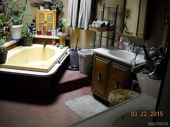 Ranch home has 3 bedrooms 2 and half baths with a first floor laundry a full basement with 8 ft ceilings, 2 car attached garage with a work shop in back of garage sits on 2 acres. Enjoy the evenings in your year old hot tub. Can make back into a in-law apartment if needed, or extra income. . 6 miles and eleven minutes to Arcade for work and shopping. Come take a look. This home is covered with a home warranty.