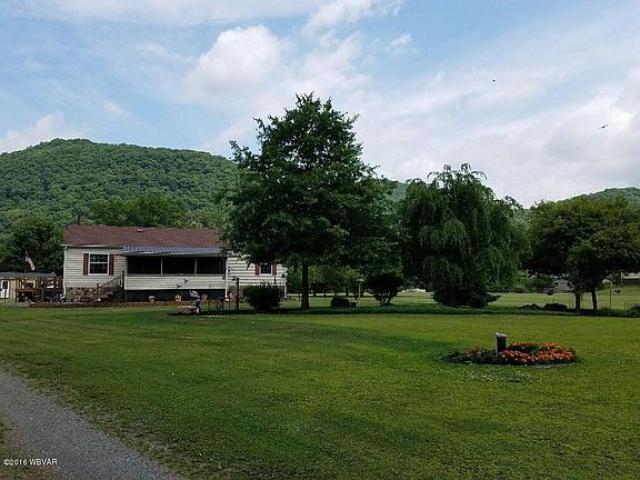 Gorgeous doublewide situated on 1.78 acres in a rural setting known as West Renovo. Features river frontage, large front and back yard, beautifully landscaped, 3 bedrm, 2 bath home with open floor plan. Wood burning fireplace in living rm, dining area combo with kitchen, laundry room on permanent slab/piers. May require flood insurance if financed. 2 large sheds and carport. Lots of wildlife.