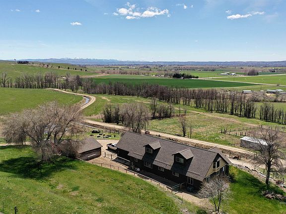 BREATHTAKING ELEVATED VIEWS!! Enjoy peace & tranquility, along w/beautiful sunrises & western sunsets over this amazing location. This ranch has been a successful cattle operation & includes the large comforable ranch house w/4 oversized bedrooms, 3 baths and lots of natural light. The spacious country style kitchen has been remodeled w.rustick barnwood accents & boasts loads of cabinets & counter space. Other improvements include updated main bathroom, newer roof, windows, most exterior siding & landscaping. The parklike yard is framed w/colorful flowers & mature trees. The front 20 acres is irrigated from a pivot. The back protioin of the ranch is currently not being irrigated. However, it has been in the past & does have water rights. This unirrigated portion consists of gorgeours rolling hills & dry pasture. Potential for 4 additional building permits. Buyer will need to veryify.